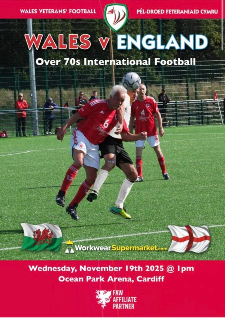 A 2-1 victory for England Veterans’ Over 70’s against old rivals Wales in Cardiff on Wednesday 19th November.